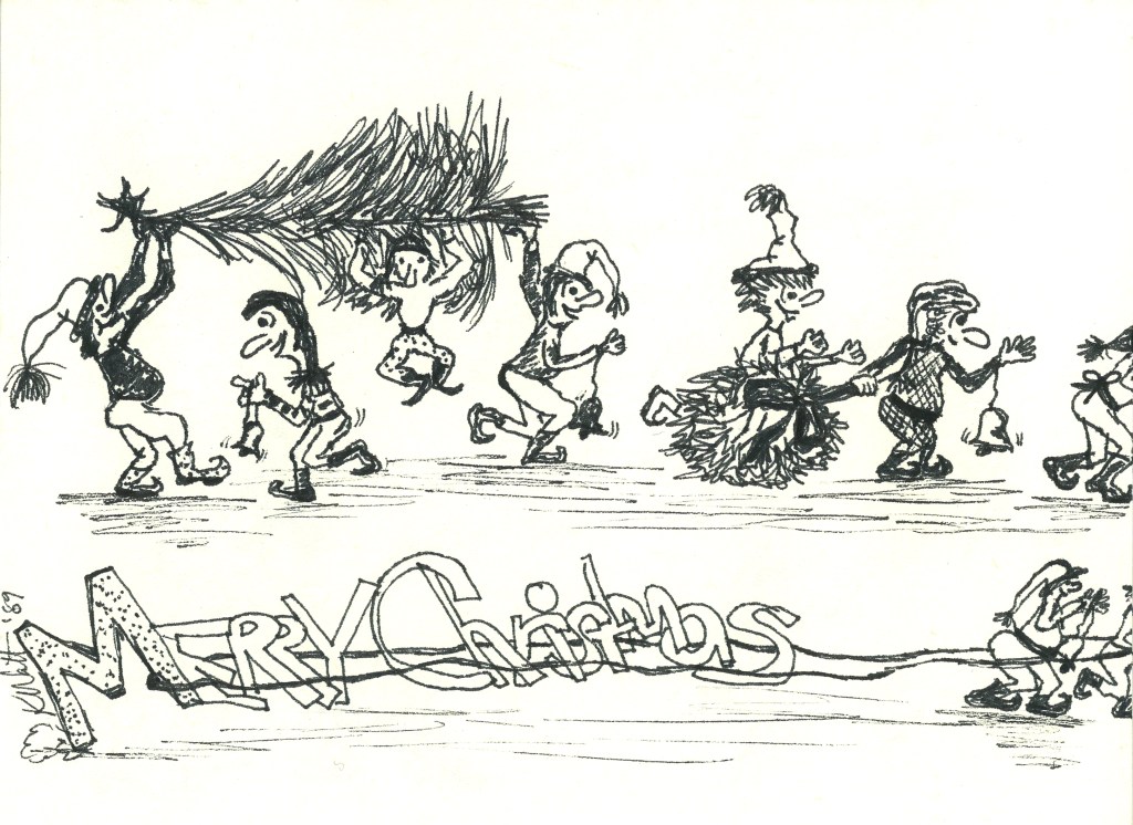 “Valentine” card. Inside text: “Let ’em drag your heart around. | Happy Valentine’s”“Merry Christmas” card 1. Inside blank.“Merry Christmas” card 2. 5″ x 6″ size or larger upon request.“Easter” card. Blank inside.